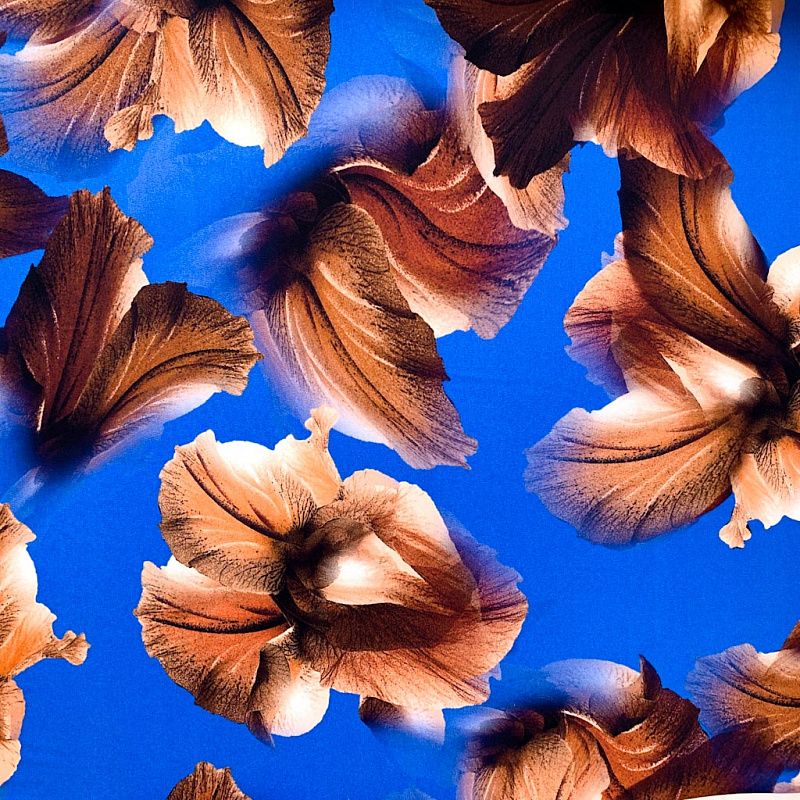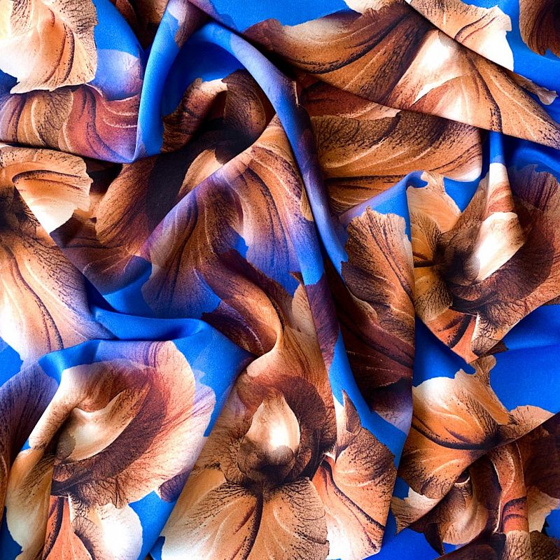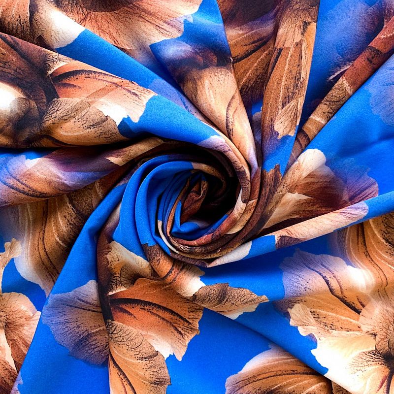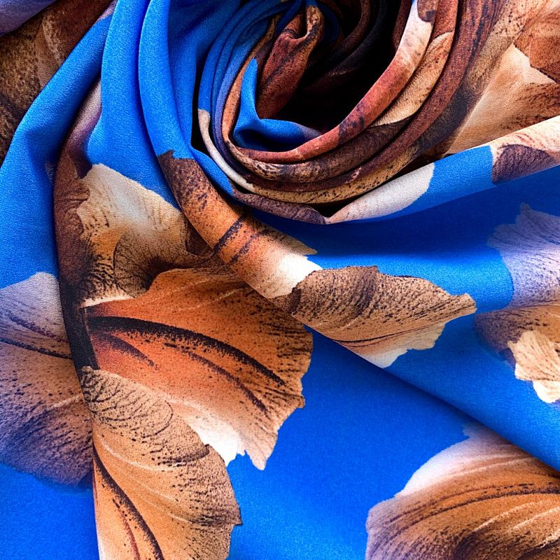 Крепдешин натуральный К32-373 лазурно-синий принтованный в Якутске