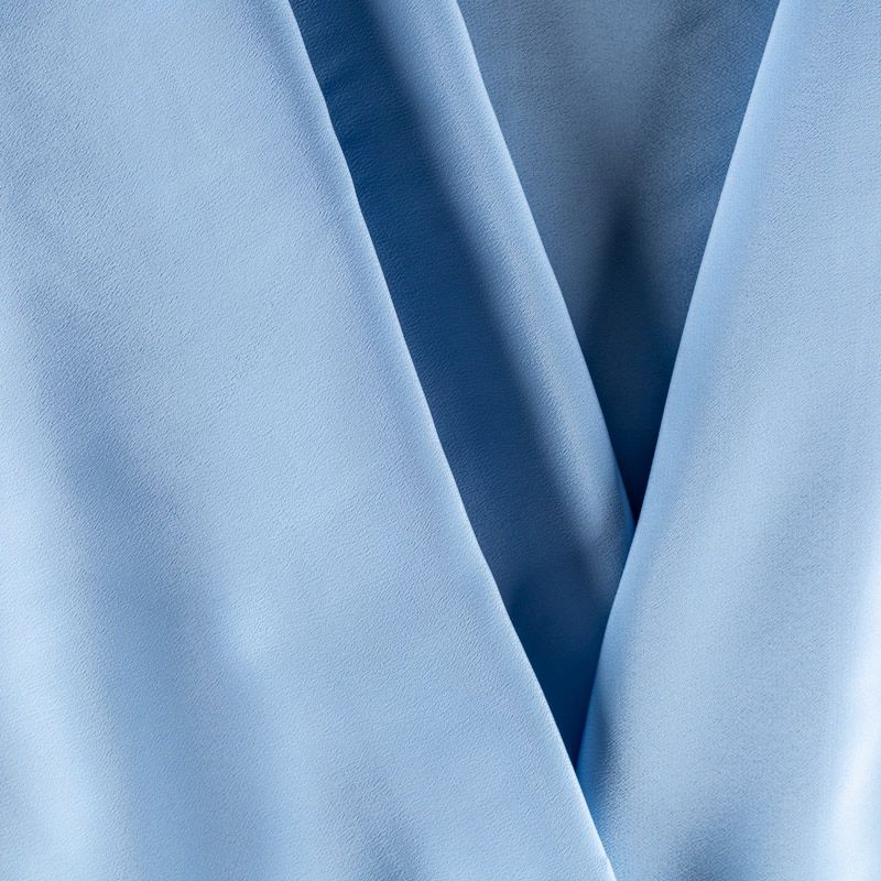 Шелковый крепдешин небесного оттенка, тонкий, легкий, фактурный, приятный на ощупь. Ткань слегка просвечивает, можно использовать подклад. Прекрасно будет смотреться в платье, юбке, тунике, рубашке или блузке.