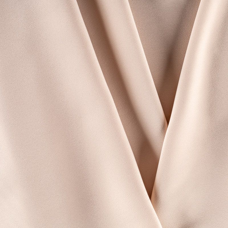 Шелковый крепдешин сливочного оттенка, тонкий, легкий, фактурный, приятный на ощупь. Ткань слегка просвечивает, можно использовать подклад. Прекрасно будет смотреться в платье, юбке, тунике, рубашке или блузке.
