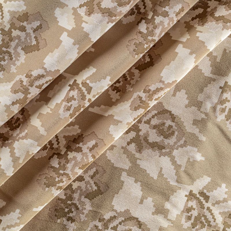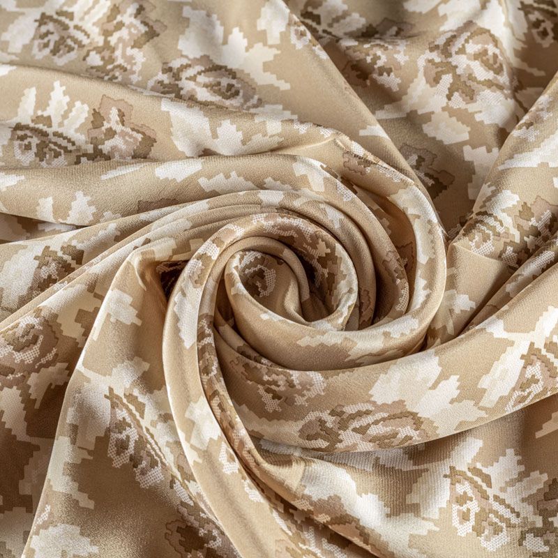 Крепдешин натуральный К4-0015 серо-бежевый принтованный в Якутске