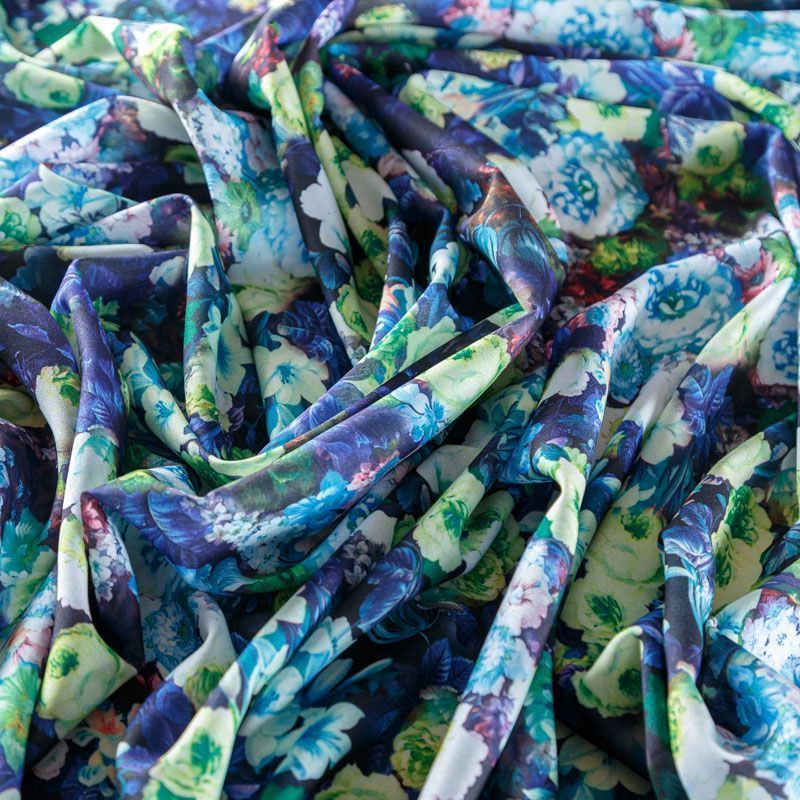 Крепдешин синтетический 029-08355 темно-синий принтованный в Якутске