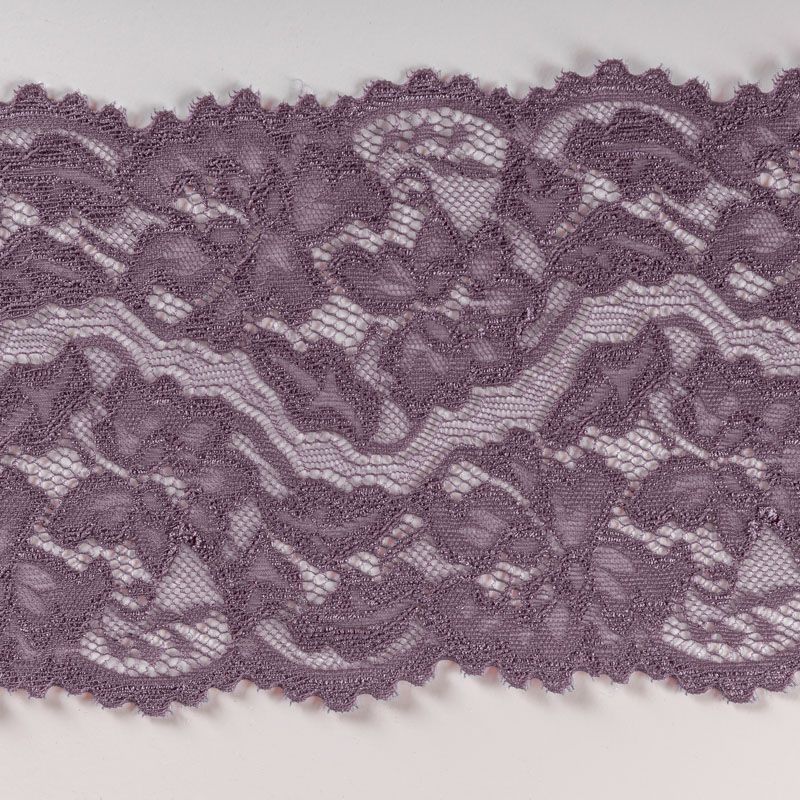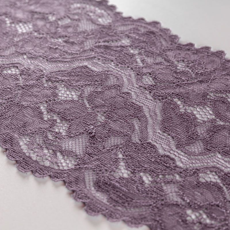 Эластичное кружево сочетает в себе мягкость, прочность и красоту, благодаря своей упругости оно долго не теряет первоначальную форму. Используется для пошива нижнего белья, а так же применяется как отделочный декор в одежде.