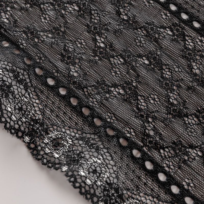 Эластичное кружево сочетает в себе мягкость, прочность и красоту, благодаря своей упругости оно долго не теряет первоначальную форму. Используется для пошива нижнего белья, а так же применяется как отделочный декор в одежде.