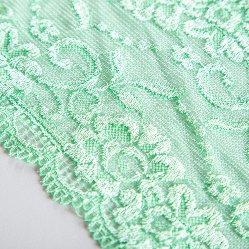 Эластичное кружево сочетает в себе мягкость, прочность и красоту, благодаря своей упругости оно долго не теряет первоначальную форму. Используется для пошива нижнего белья, а так же применяется как отделочный декор в одежде.