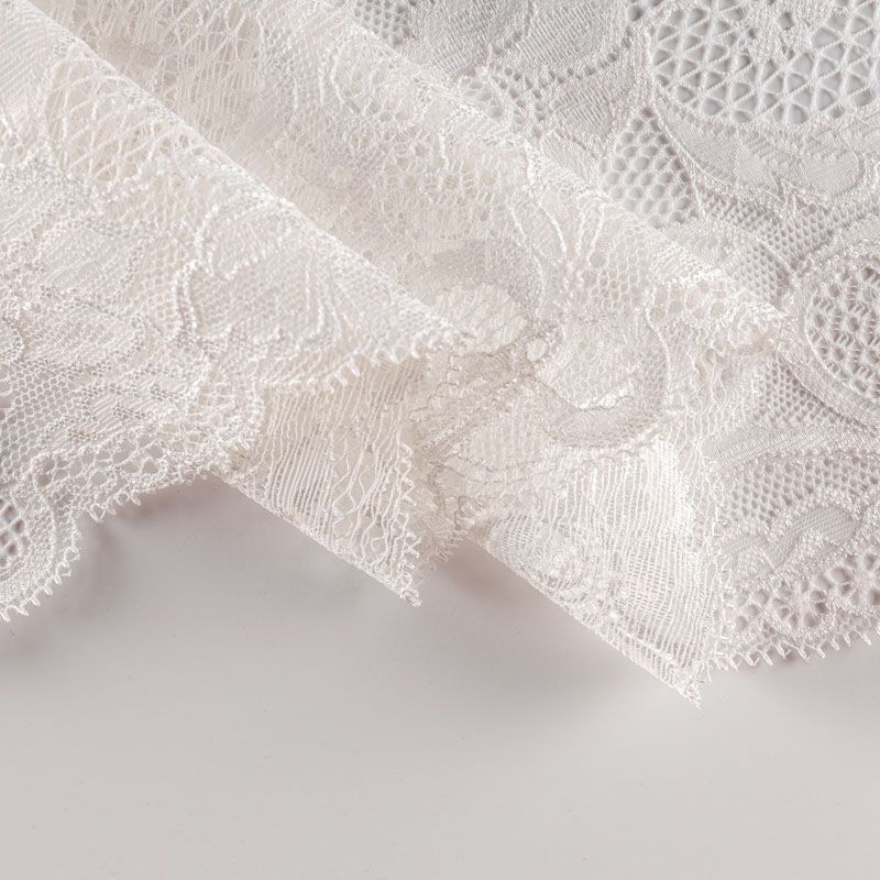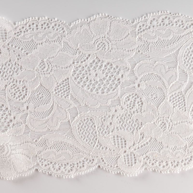 Эластичное кружево сочетает в себе мягкость, прочность и красоту, благодаря своей упругости оно долго не теряет первоначальную форму. Используется для пошива нижнего белья, а так же применяется как отделочный декор в одежде.