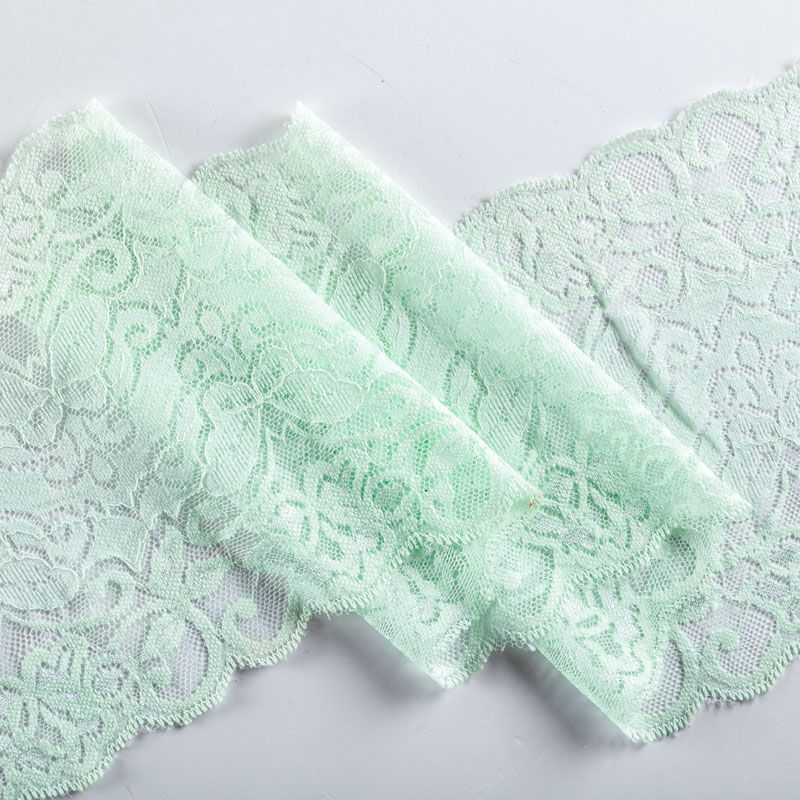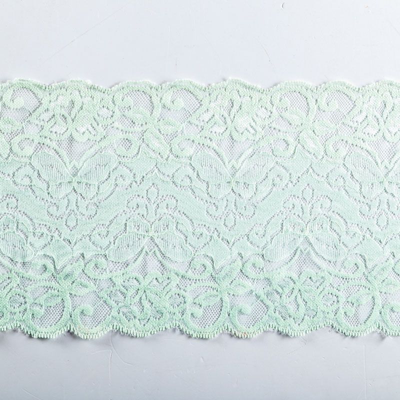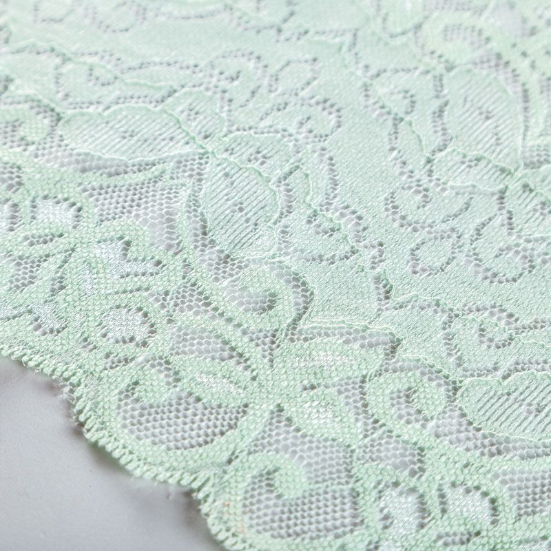 Эластичное кружево сочетает в себе мягкость, прочность и красоту, благодаря своей упругости оно долго не теряет первоначальную форму. Используется для пошива нижнего белья, а так же применяется как отделочный декор в одежде.