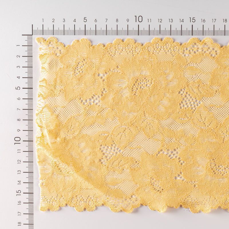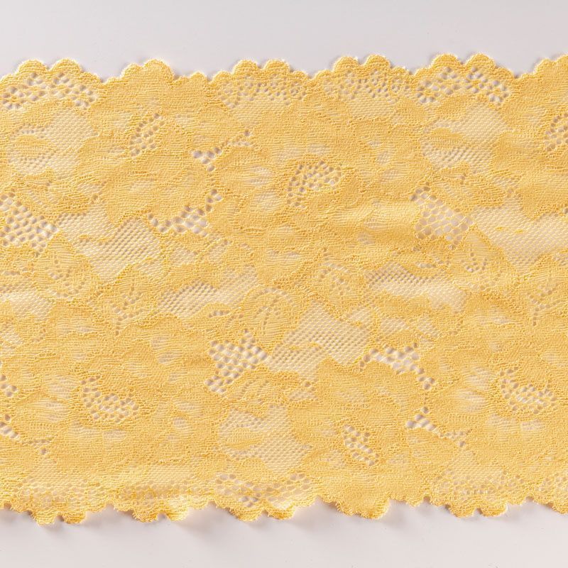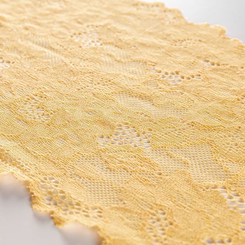 Эластичное кружево сочетает в себе мягкость, прочность и красоту, благодаря своей упругости оно долго не теряет первоначальную форму. Используется для пошива нижнего белья, а так же применяется как отделочный декор в одежде.