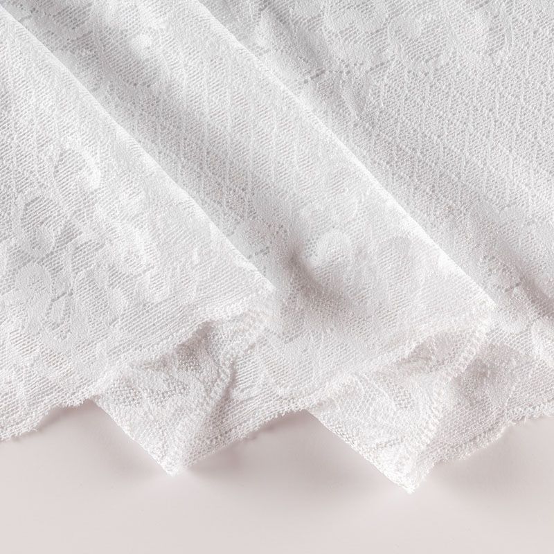 Эластичное кружево сочетает в себе мягкость, прочность и красоту, благодаря своей упругости оно долго не теряет первоначальную форму. Используется для пошива нижнего белья, а так же применяется как отделочный декор в одежде.