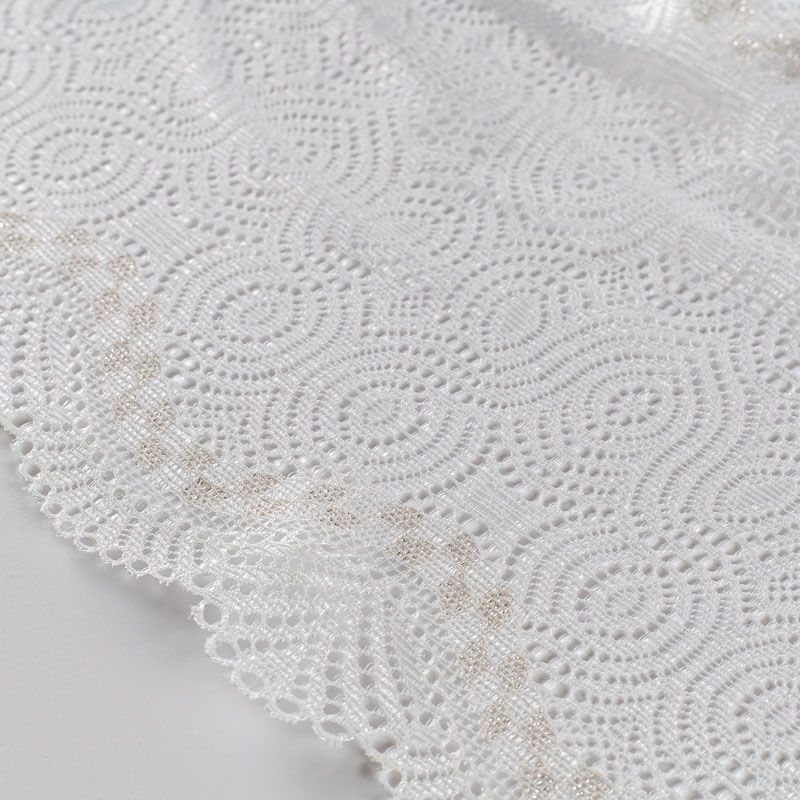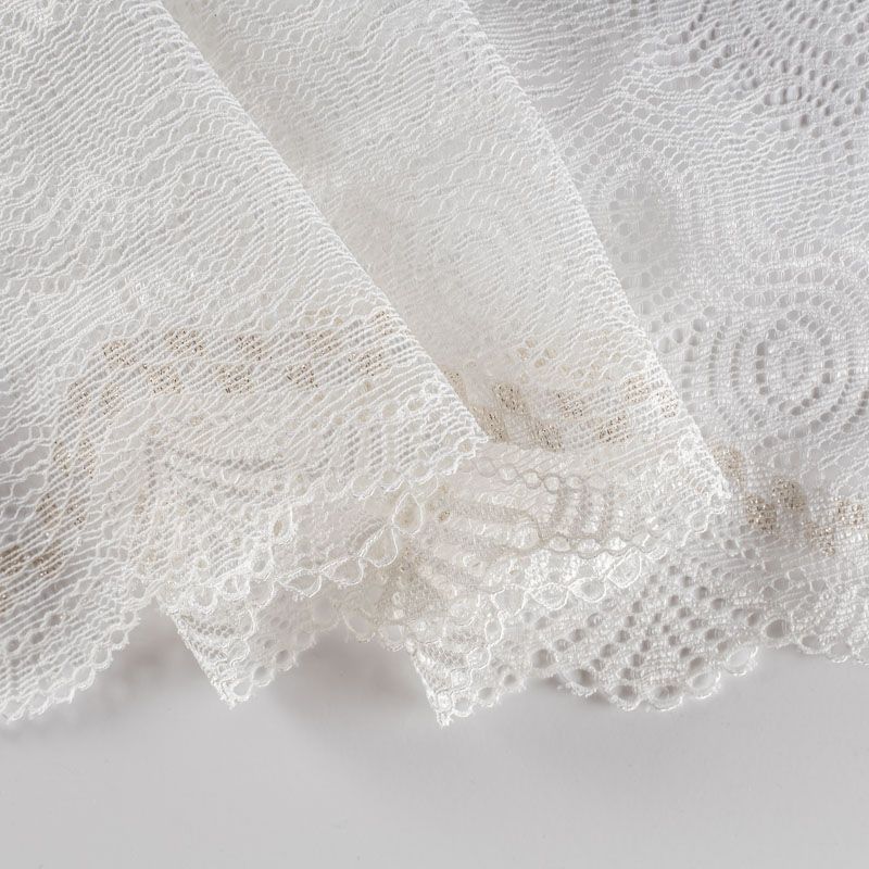 Эластичное кружево сочетает в себе мягкость, прочность и красоту, благодаря своей упругости оно долго не теряет первоначальную форму. Используется для пошива нижнего белья, а так же применяется как отделочный декор в одежде.