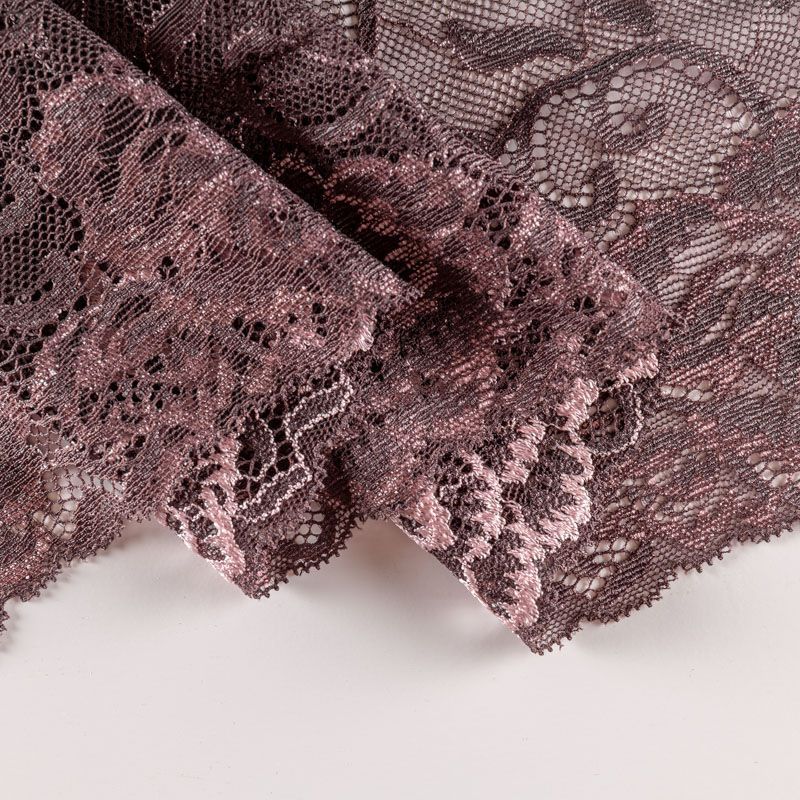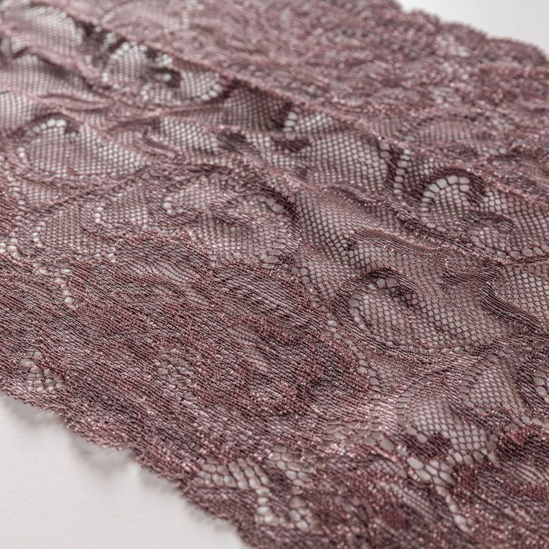 Эластичное кружево сочетает в себе мягкость, прочность и красоту, благодаря своей упругости оно долго не теряет первоначальную форму. Используется для пошива нижнего белья, а так же применяется как отделочный декор в одежде.