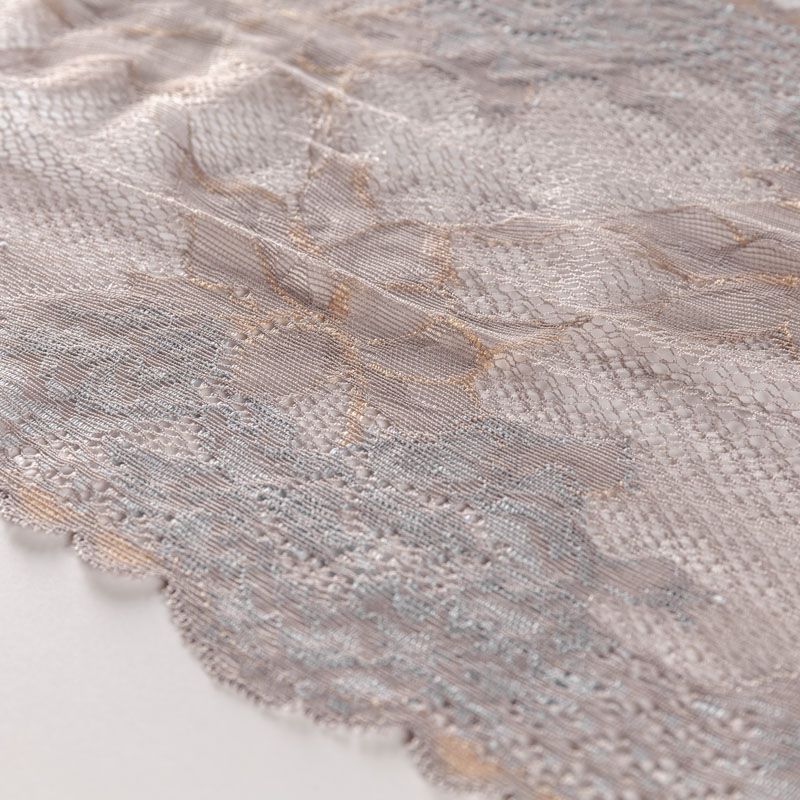 Эластичное кружево сочетает в себе мягкость, прочность и красоту, благодаря своей упругости оно долго не теряет первоначальную форму. Используется для пошива нижнего белья, а так же применяется как отделочный декор в одежде.