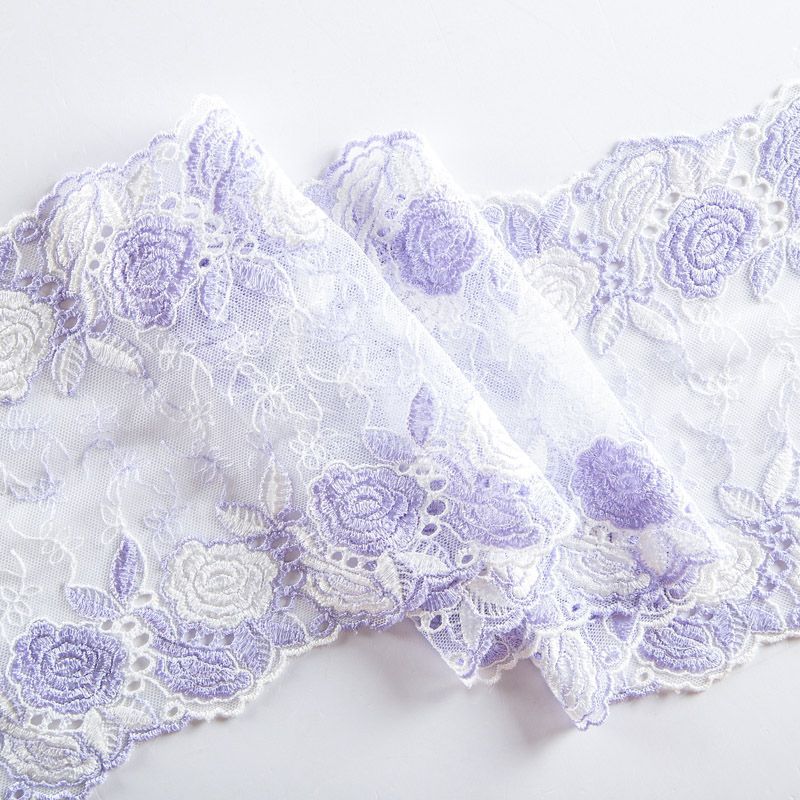 Эластичное кружево сочетает в себе мягкость, прочность и красоту, благодаря своей упругости оно долго не теряет первоначальную форму. Используется для пошива нижнего белья, а так же применяется как отделочный декор в одежде.
