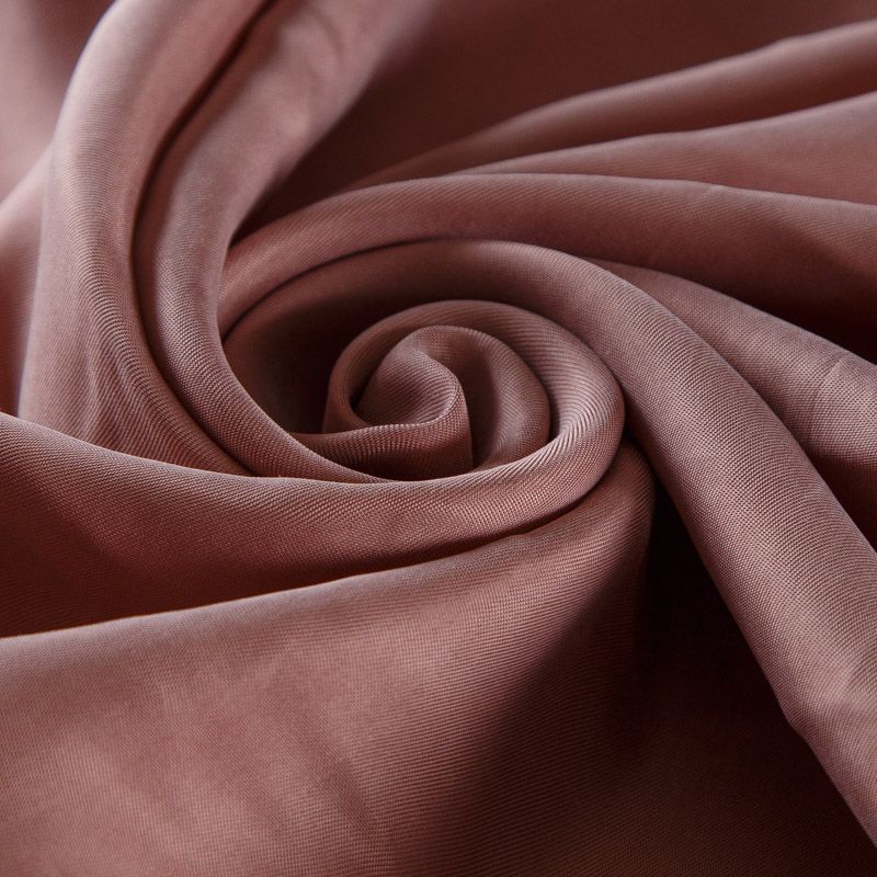 Итальянская купро плательно-костюмной плотности мягкая, пластичная, струящаяся, отлично драпируется, не просвечивает. Поверхность ткани бархатистая, похожа на мокрый шелк. Идеально подойдет для платьев свободного силуэта, брюк-палацио, юбок, шорт, туник, платья-рубашки, блузы.