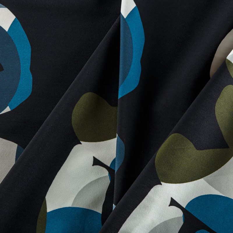 Итальяская качественная, красивая и приятная на ощупь лайкра черного цвета со стильным принтом в виде надписей. Поверхность ткани матовая и гладкая. Идеально облегает фигуру, тянется по двум направлениям, хорошо драпируется, отлично держит форму, устойчива к пилингу, долговечна и гигроскопична. Используется для пошива одежды для танцев, гимнастики, фигурного катания, для велоспорта, легкой атлетики и аэробики, фитнеса и других видов спорта, для купальников, женского белья, театральных, цирковых и эстрадных костюмов.