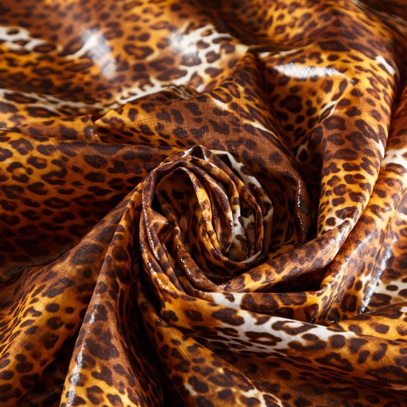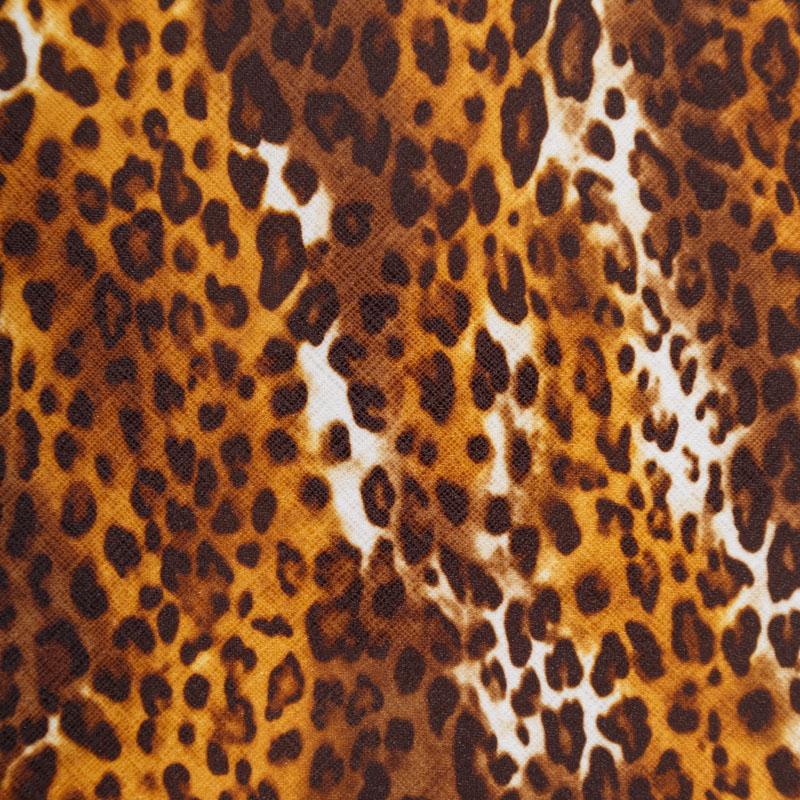 Итальяская качественная, красивая и приятная на ощупь лайкра с анималистическим принтом в желто-коричневых оттенках. Поверхность имеет искрящийся глянец за счет лазерной обработки ткани. Идеально облегает фигуру, тянется по двум направлениям, хорошо драпируется, отлично держит форму, устойчива к пилингу, долговечна и гигроскопична. Используется для пошива одежды для танцев, гимнастики, фигурного катания, для велоспорта, легкой атлетики и аэробики, фитнеса и других видов спорта, для купальников, женского белья, театральных, цирковых и эстрадных костюмов.