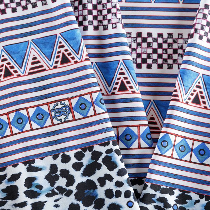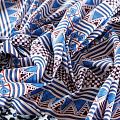 Итальяская качественная, красивая и приятная на ощупь лайкра белого цвета со сложным составным принтом в синих оттенках от известного бренда. Поверхность ткани матовая и гладкая. Идеально облегает фигуру, тянется по двум направлениям, хорошо драпируется, отлично держит форму, устойчива к пилингу, долговечна и гигроскопична. Используется для пошива одежды для танцев, гимнастики, фигурного катания, для велоспорта, легкой атлетики и аэробики, фитнеса и других видов спорта, для купальников, женского белья, театральных, цирковых и эстрадных костюмов.