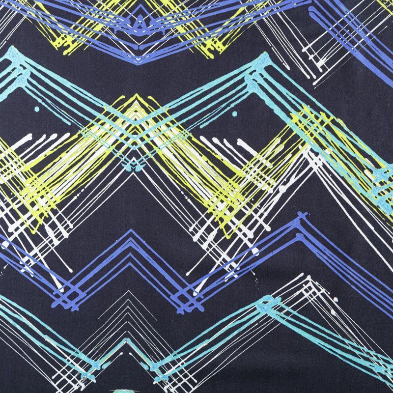 Итальяская качественная, красивая и приятная на ощупь лайкра черного цвета со стильным абстактным принтом в ярких неоновых оттенках. Поверхность ткани матовая и гладкая. Идеально облегает фигуру, тянется по двум направлениям, хорошо драпируется, отлично держит форму, устойчива к пилингу, долговечна и гигроскопична. Используется для пошива одежды для танцев, гимнастики, фигурного катания, для велоспорта, легкой атлетики и аэробики, фитнеса и других видов спорта, для купальников, женского белья, театральных, цирковых и эстрадных костюмов.