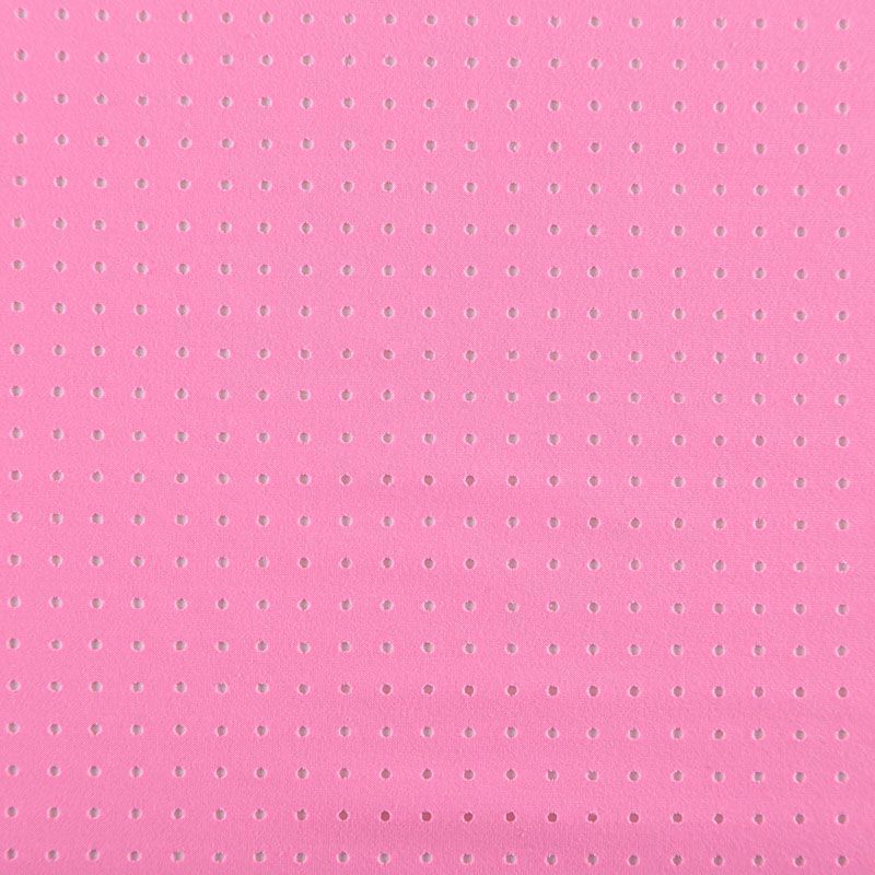 Итальяская качественная, красивая и приятная на ощупь лайкра с перфорацией ярко-розового оттенка. Поверхность ткани матовая, гладкая, шелковистая на ощупь. Идеально облегает фигуру, тянется по двум направлениям, хорошо драпируется, отлично держит форму, устойчива к пилингу, долговечна и гигроскопична. Используется для пошива одежды для танцев, гимнастики, фигурного катания, для велоспорта, легкой атлетики и аэробики, фитнеса и других видов спорта, для купальников, женского белья, театральных, цирковых и эстрадных костюмов.