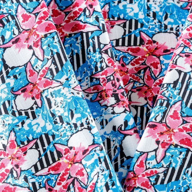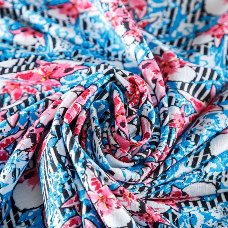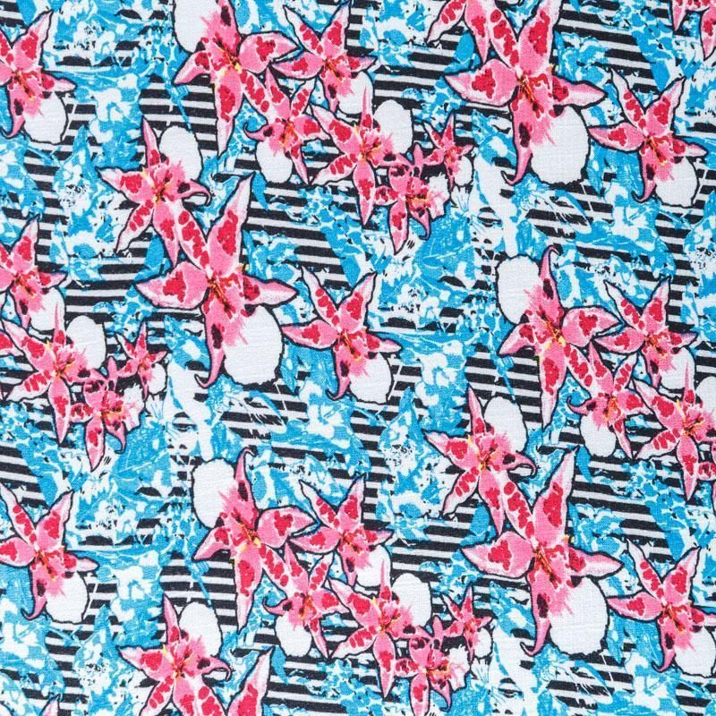 Лен искусственный 035-07866 голубой принтованный