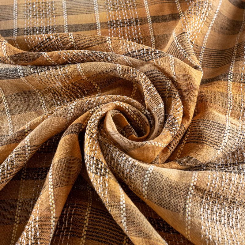 Итальянский лен с добавлением вискозы средней плотности со сложной "клетчатой" геометрией в коричневых оттенках. Различная толщина нитей создает эффектную фактуру. Ткань пластичная, гибкая за счет плетения, матовая, мягкая, приятная на ощупь, не рыхлая, комфортная в изделии. Отлично подойдет для пошива летних костюмов, рубашек, туник, платьев, сарафанов, юбок, жакетов, брюк или шорт, легкого пальто.