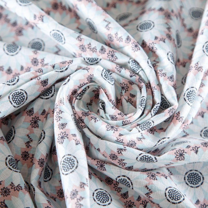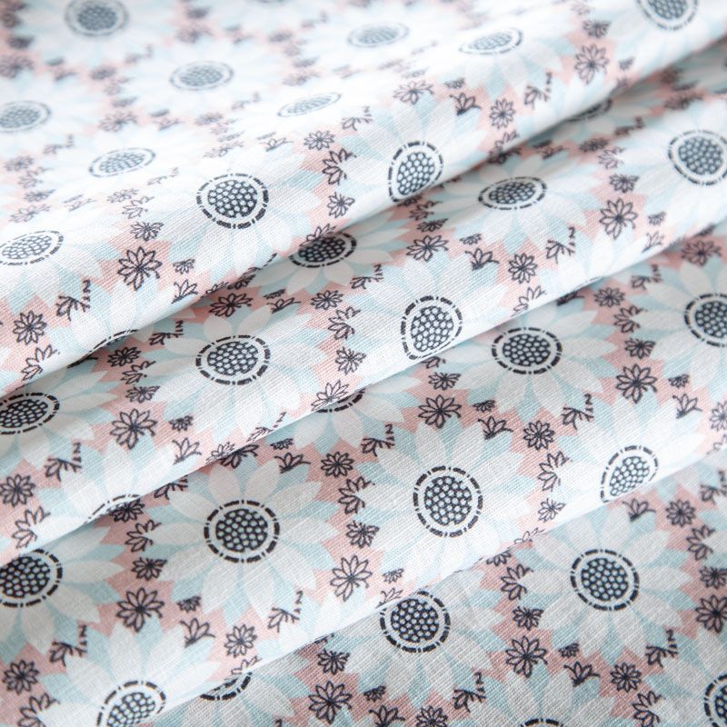 Лен натуральный 035-07870 выбеленный голубой принтованный