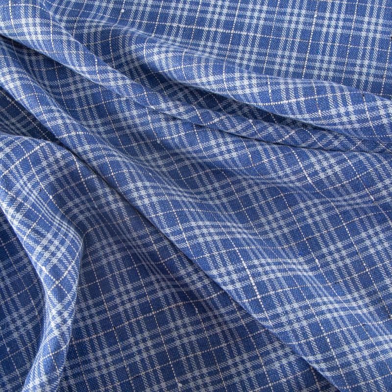 Лен натуральный 035-19980 сине-голубой клетка в Якутске