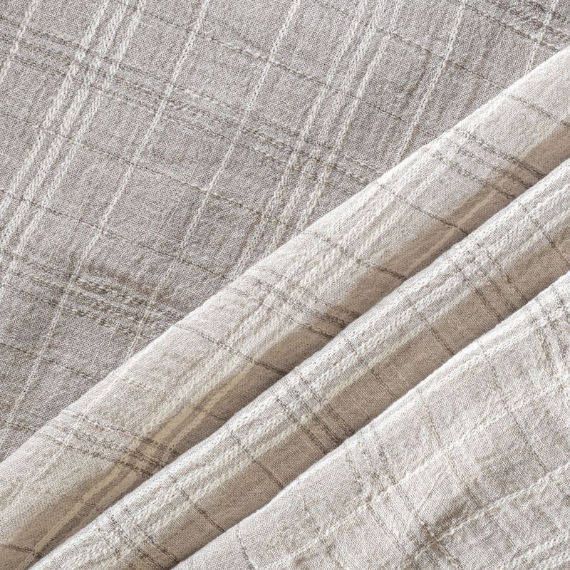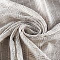 Итальянский лен с добавлением вискозы средней плотности со сложной "клетчатой" геометрией в светло-серых оттенках. Различная толщина нитей создает эффектную фактуру. Ткань пластичная, гибкая за счет плетения,  матовая, мягкая, приятная на ощупь, не много рыхлая, комфортная в изделии. Отлично подойдет для пошива летних костюмов, рубашек, туник, платьев, сарафанов, юбок, жакетов, брюк или шорт, легкого пальто.
