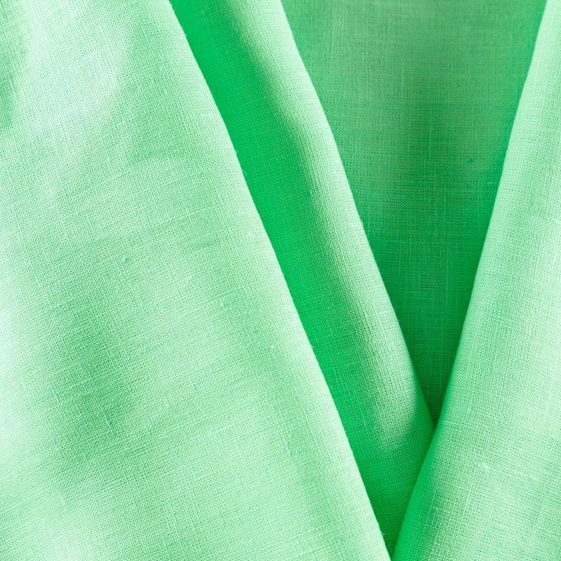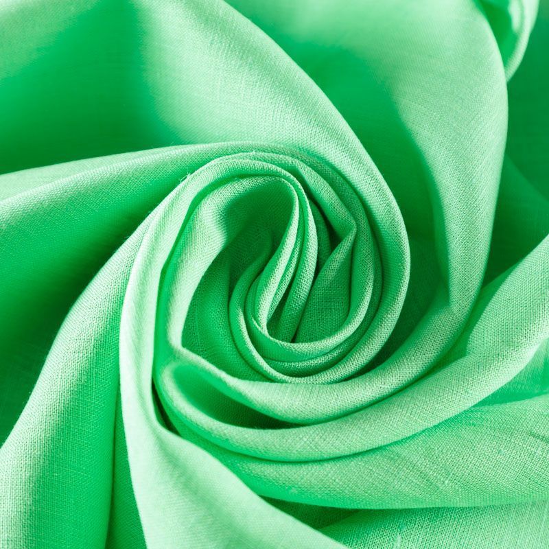 Итальянский костюмно-плательный лен с добавлением вискозы в ярком зеленом оттенке. Ткань прочная, имееет на ощупь приятную, гладкую поверхность, а визуально - выраженный рельеф и полотняное переплетение, держит форму, пластичная. Подойдет для пошива костюмов, брюк, шорт, юбок, платьев, сарафанов, топов, комбинезонов, жакетов, кардиганов.