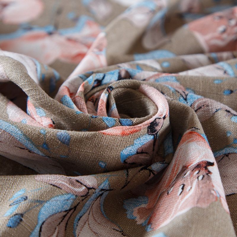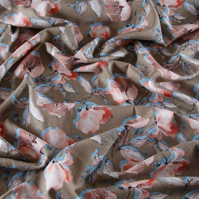 Лен-вискоза 035-13865 песочно-бежевый принтованный в Якутске