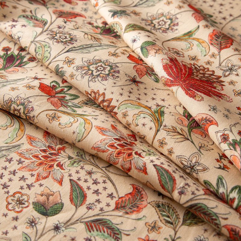 Лен-вискоза 035-20286 бежевый принтованный в Якутске