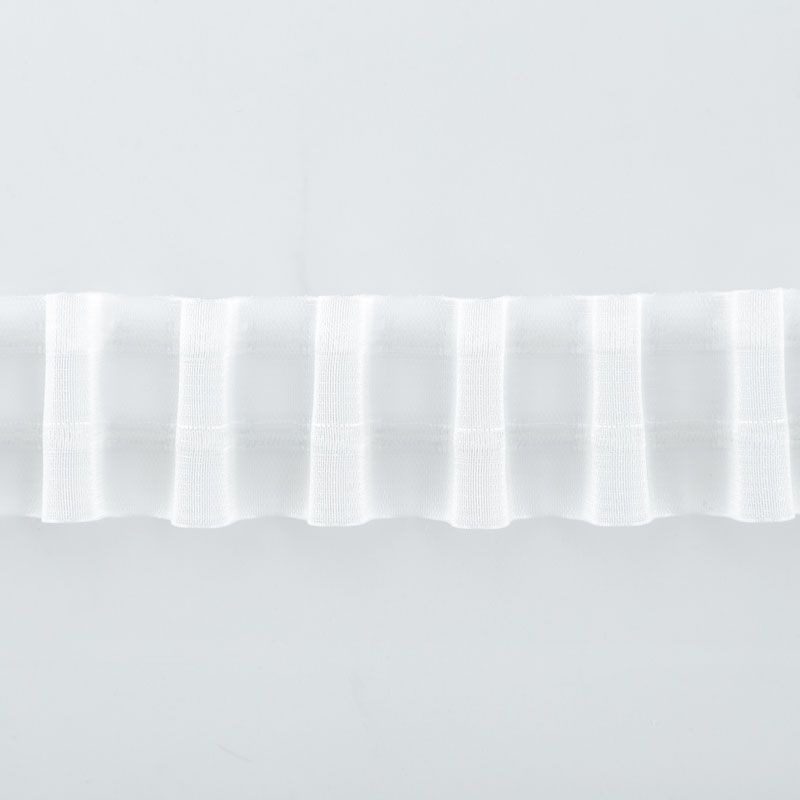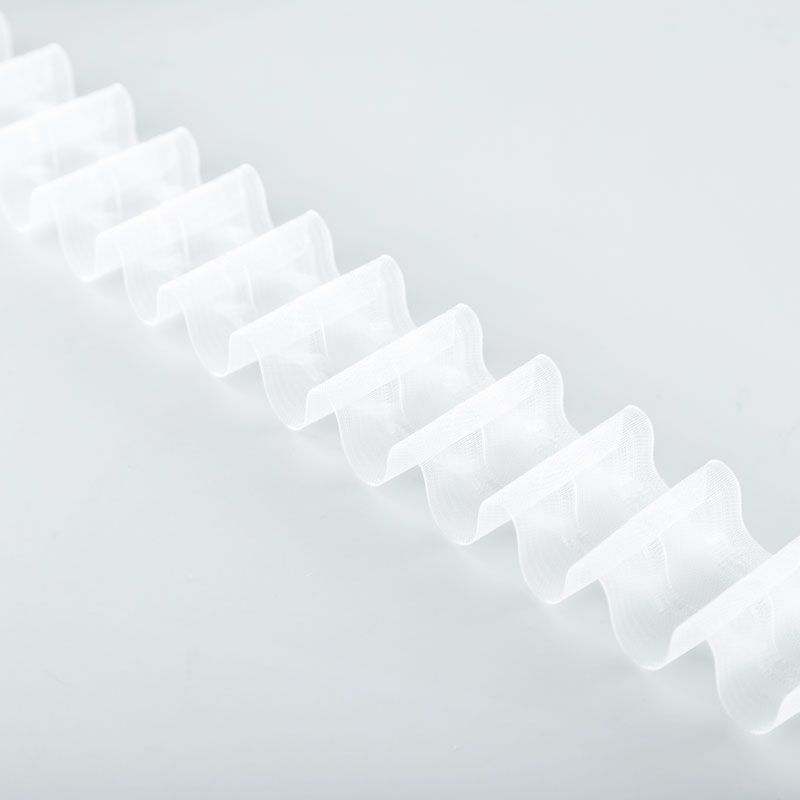 Шторная лента полностью прозрачная для тюлей и портьерных тканей со сборкой волна. Сокращение - 1:1,8, раппорт - 6 см, расстояние между складками - 3,3 см, 2 ряда кармашков, крепление - крючки.