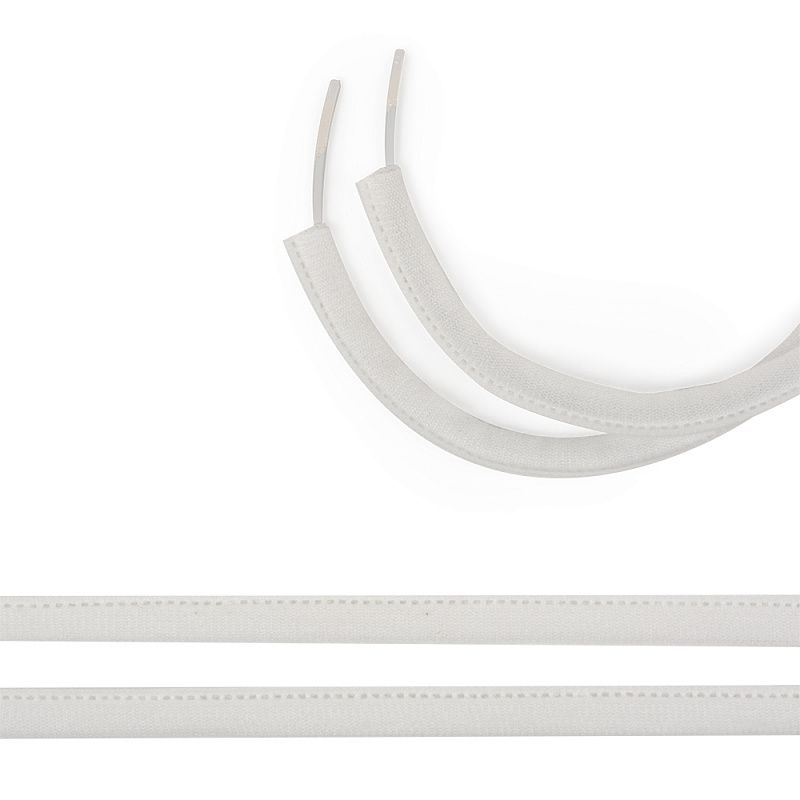 Лента тоннельная однострочная используется для продевания в нее каркаса и создания необходимой поддержки груди. Изготавливается из нескольких слоев материала с подогнутыми вовнутрь срезами, закрепленными сварным двухлинейным швом.
