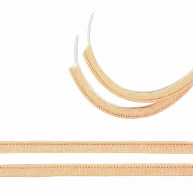 Лента тоннельная однострочная используется для продевания в нее каркаса и создания необходимой поддержки груди. Изготавливается из нескольких слоев материала с подогнутыми вовнутрь срезами, закрепленными сварным двухлинейным швом.