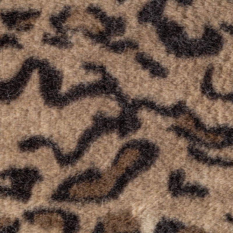 Мех с низким ворсом, имитирующий мутон на синтетической основе. Мягкий, плотный, пластичный. Ворс имеет сдержанный блеск и направление. Принт леопардовый, естественных оттенков. Идеально подойдет для пошива шубки, мехового пальто или отделки.