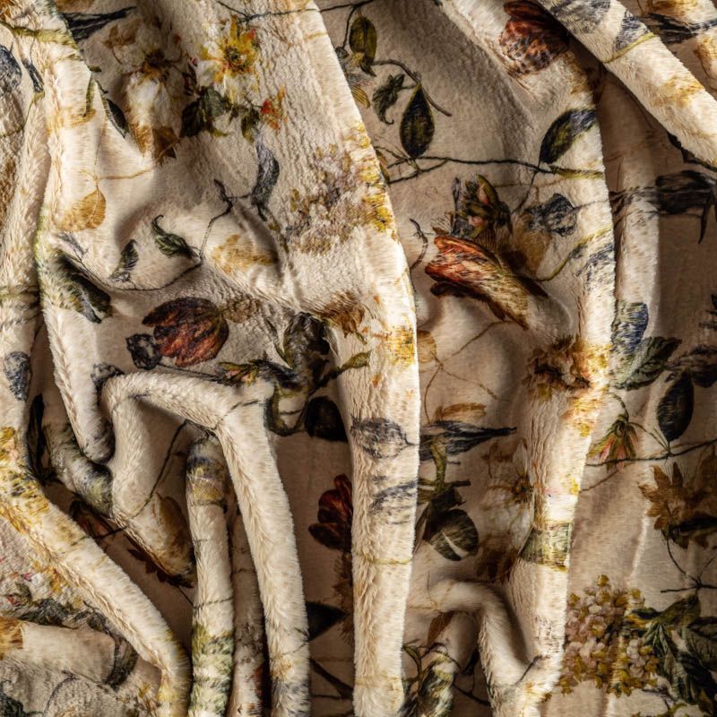 Искусственный мех, имитирующий кролика. На оливковом фоне оранжевые, молочные, желтые цветы. Красивое осеннее сочетание оттенков. Полотно мягкое, плюшевое, с коротким нежным ворсом. Имеет красивый лоск и приятную гладкую фактуру. Мех не мнется, не скатывается, долго сохраняет свой вид, очень уютный. Не тяжелый, отлично драпируется. Идеально подойдет для пошива шубки, мехового пальто, бомбера, куртки.