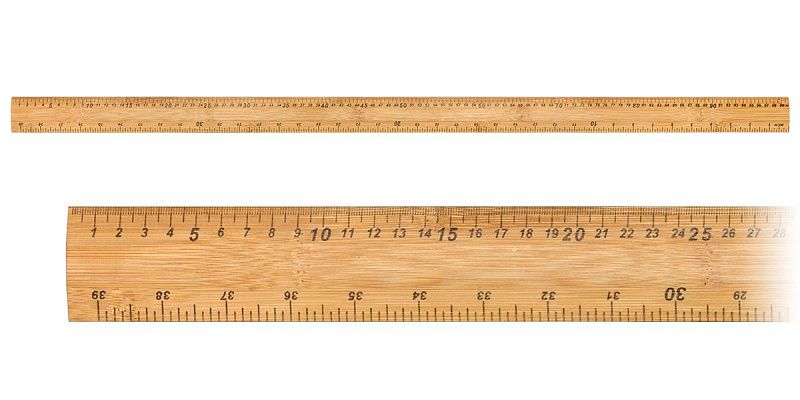 Метры бамбуковые без метрологической аттестацией предназначены для измерений длины тканей и метражных изделий. Принцип действия метра - измерение длины путём наложения метра на измеряемый объект. Метр представляет собой полосу прямоугольного сечения вдоль всей длины. Наконечники скрепляются заклепками из мягкого материала. На шкаловых поверхностях метра нанесены встречные шкалы. Началом и концом шкалы являются торцы.