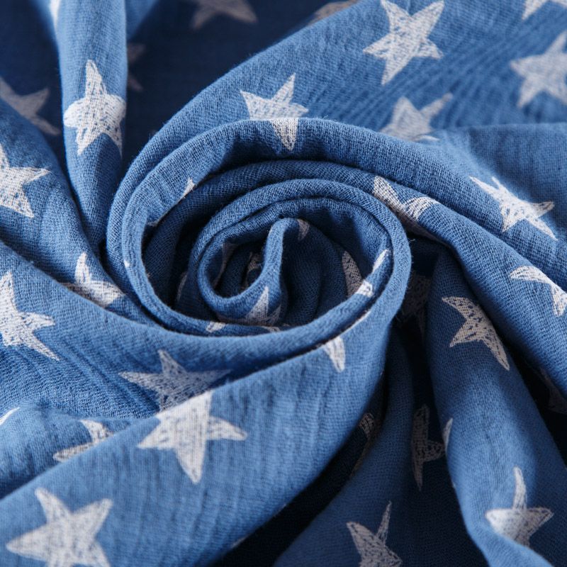 Муслин 071-12335 сине-голубой деним принтованный