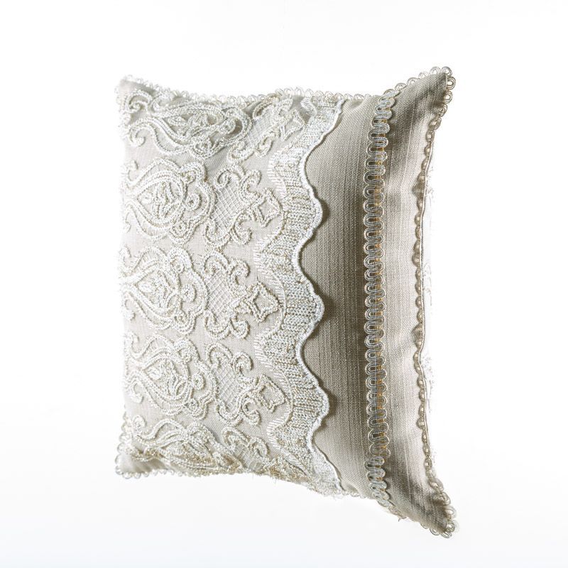 Оригинальная дизайнерская наволочка на подушку 40х40 см. Декорирована ажурной тесьмой и тюлевым полотном. Потайная молния расположена в нижнем шве. Декоративные подушки сделают акцет на цветовой гамме Вашего помещения, подчеркнут особенности интерьерного стиля или тематику оформления. Внимание! Подушка-вкладыш или синтепон приобретаются отдельно.