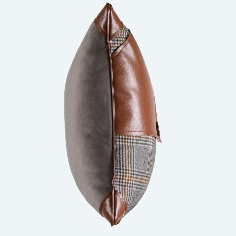 Оригинальная дизайнерская наволочка на подушку 50х50 см. Выполнена из замши, шотландки и качественной экокожи. Потайная молния расположена в нижнем шве. Декоративные подушки сделают акцет на цветовой гамме Вашего помещения, подчеркнут особенности интерьерного стиля или тематику оформления. Внимание! Подушка-вкладыш или синтепон приобретаются отдельно.