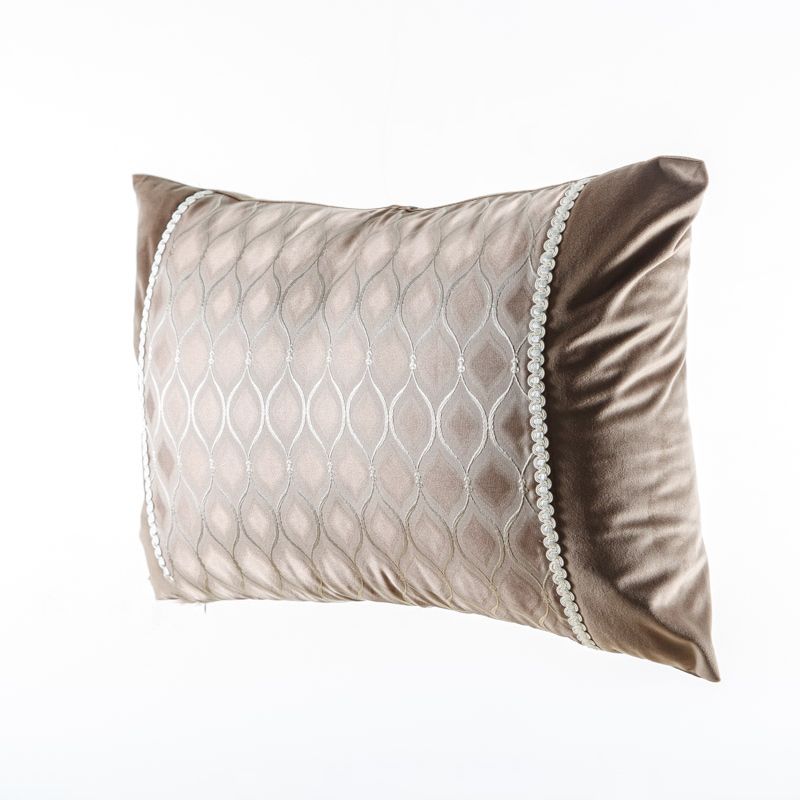 Оригинальная дизайнерская наволочка 60х40 см. Выполнена из бархата  и жаккарда и декорирована ажурной тесьмой и кантом. Потайная молния расположена в нижнем шве. Декоративные подушки сделают акцет на цветовой гамме Вашего помещения, подчеркнут особенности интерьерного стиля или тематику оформления. Внимание! Подушка-вкладыш или синтепон приобретаются отдельно.