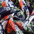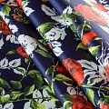 Плотное полотно синего оттенка с красивым ярким цветочным принтом в стиле известного бренда, не тяжелое, гибкое, великолепно держит форму и хорошо тянется. Прочное, практичное, долговечное, совершенно не мнется. Отлично сохраняет тепло. Подойдет для пошива пальто, жакетов, курток, жилетов, бомбера, юбки или шорт.