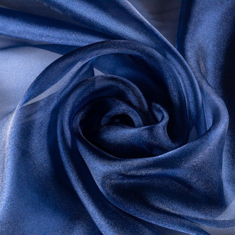 Легчайший, прозрачный, но не рыхлый материал с искрящейся переливчатой поверхностью. Изящный и воздушный, не деформируется, прекрасно держит форму и драпируется. Подойдет для пошива платья или блузы свободного силуэта на подкладе, а также для декора.