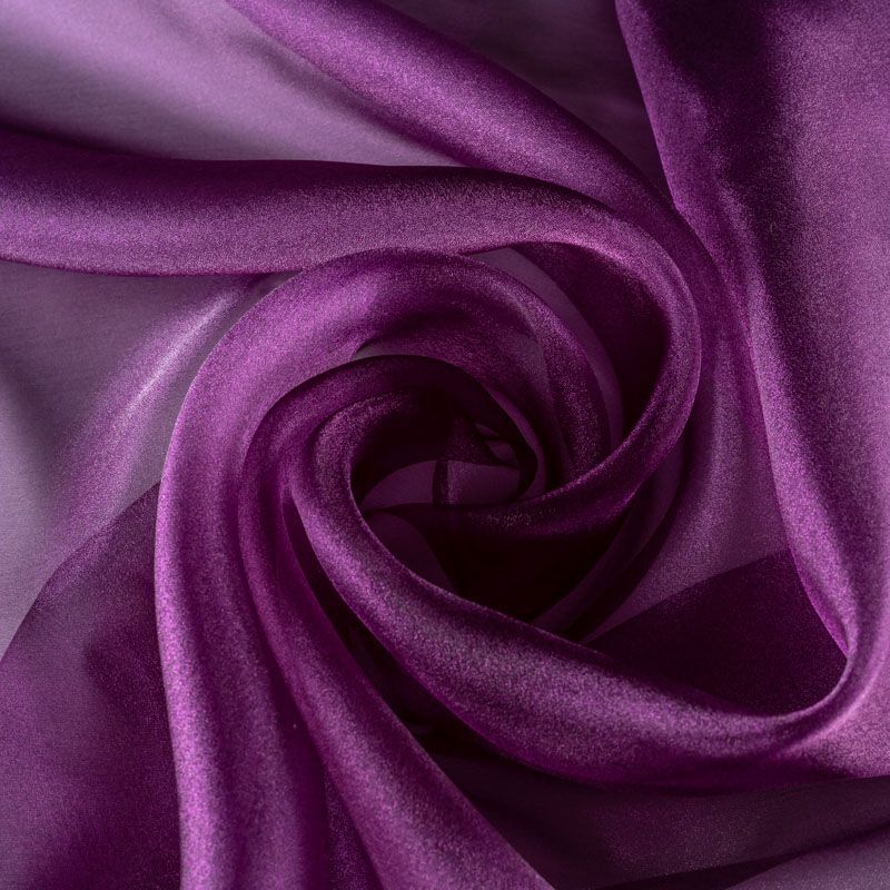Легчайший, прозрачный, но не рыхлый материал с искрящейся переливчатой поверхностью. Изящный и воздушный, не деформируется, прекрасно держит форму и драпируется. Подойдет для пошива платья или блузы свободного силуэта на подкладе, а также для декора.