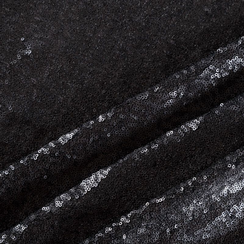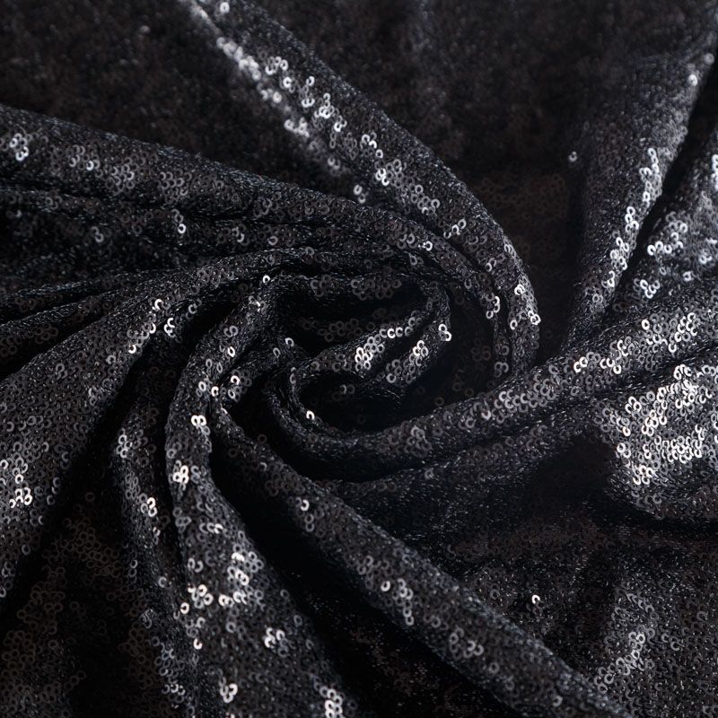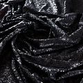 Тонкая эластичная сетка черного цвета по всей поверхности усеяна мелкими полуматовыми пайетками в тон основе. Ткань очень хорошо драпируется, красиво переливается, пластичная и эластичная и в длину, и в ширину, благодаря чему изделия получаются комфортными и отлично сидят по фигуре. Пайетки — идеальный материал для праздников и вечеринок. Из них получится эффектное платье, жакет, боди, топ, туника, юбка или комбинезон.