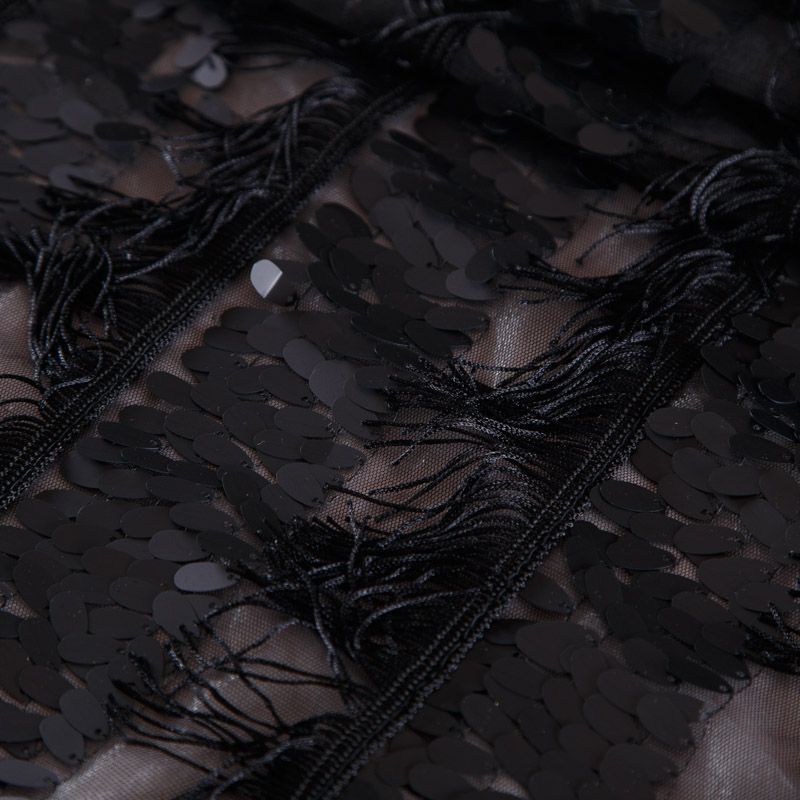 Итальянские пайетки на сетке с бахромой. Горизонтальные полоски пришитых матовых пайеток чередуются с мягкой бахромой. Сетка не тянется, требуется подклад.