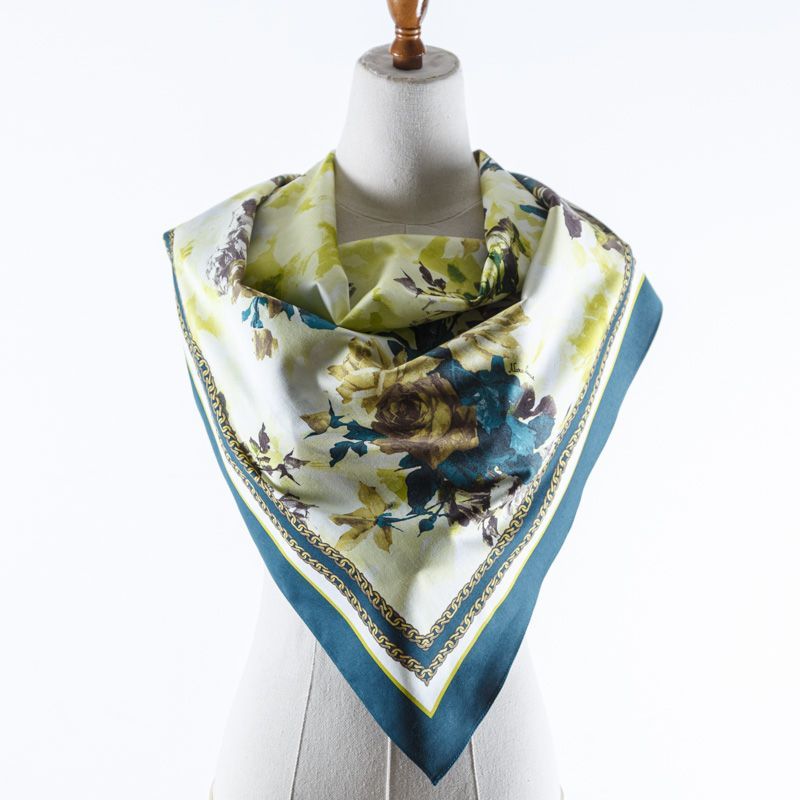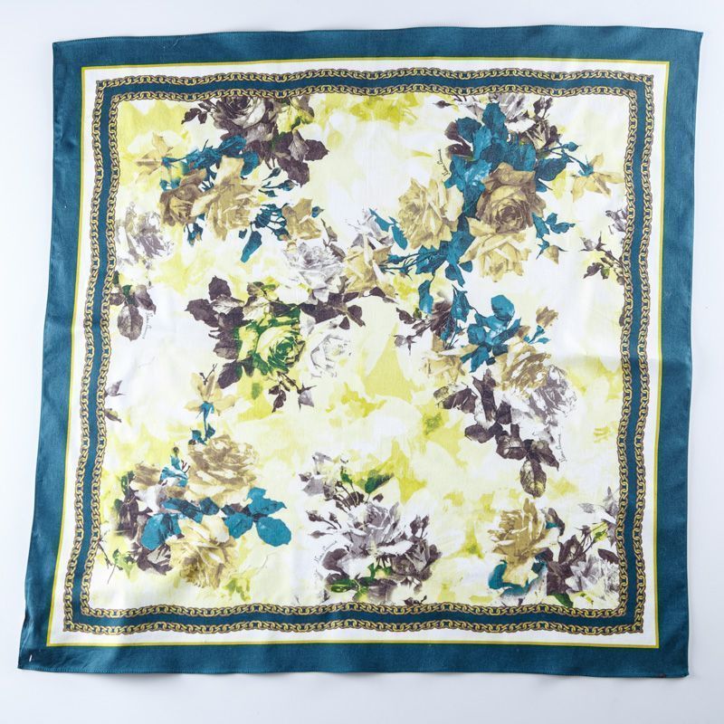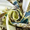 Эффектный и стильный платок с крупными желтыми розами на белом фоне с кантами из цепочек. Платок выполнен из натурального итальянского хлопка. Такой аксессуар добавит свежести и весеннего настроения в Ваш образ.