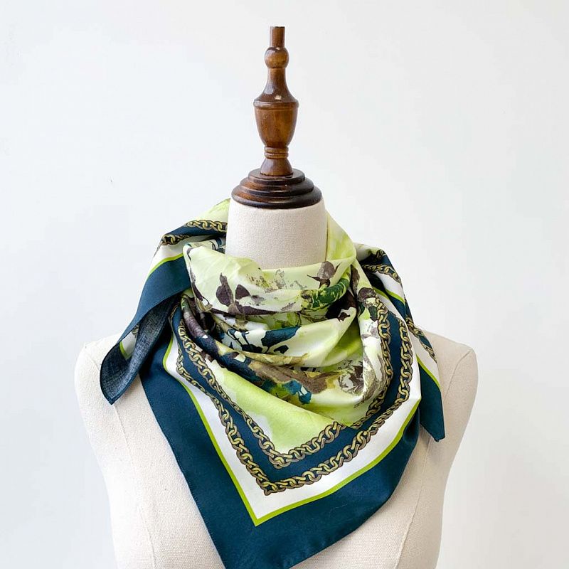 Эффектный и стильный платок с крупными желтыми розами на белом фоне с кантами из цепочек. Платок выполнен из натурального итальянского хлопка. Такой аксессуар добавит свежести и весеннего настроения в Ваш образ.