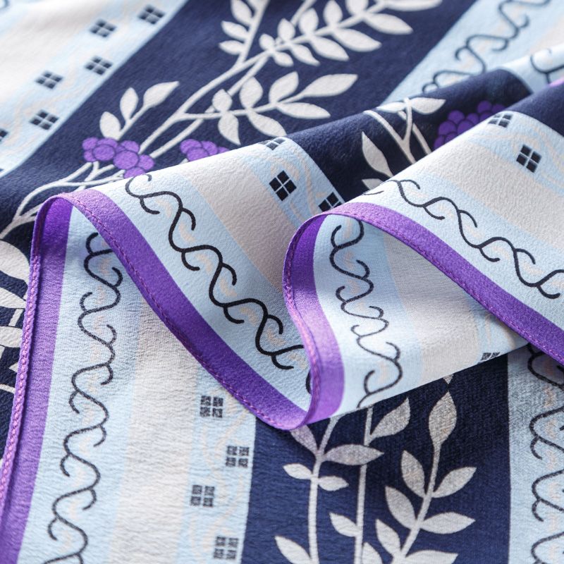 Платок выполнен из шелкового крепдешина с расттительно-абстрактным орнаментом. Невесомый, воздушный, мягкий и пластичный, летящий, поверхность матовая, фактурная. Будет отличным стильным аксессуаром к платью, костюму, жакету или пальто.
