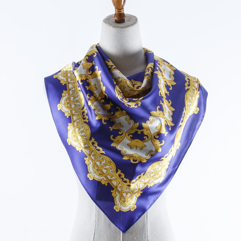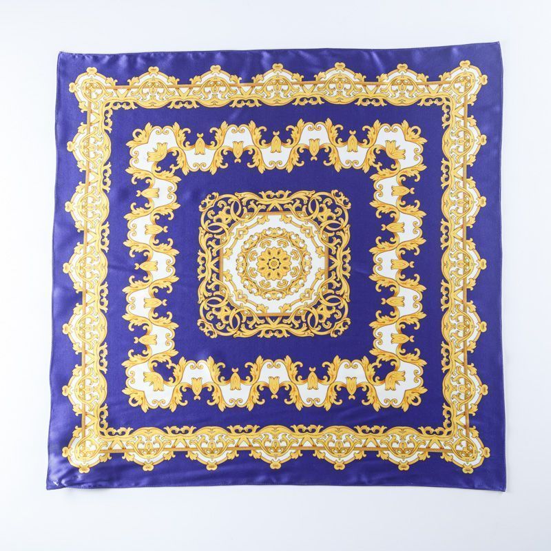 Платок шелковый 67х67 см 510753 фиолетово-синий принтованный