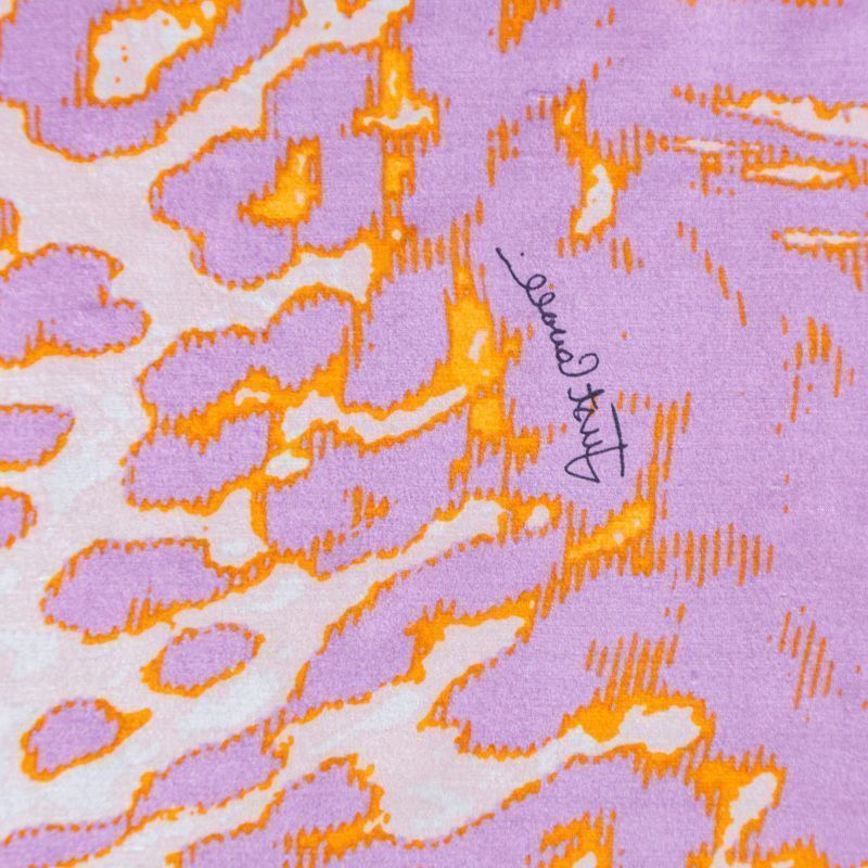 Изящный, нежный и необыкновенный шарф из итальянского шелкового шифона с крупным анималистичным принтом "зебра" в ярких оранжевых и фиолетовых тонах на молочном фоне. Невесомый, воздушный, мягкий и пластичный, летящий, поверхность с красивым матовым блеском. Будет отличным стильным аксессуаром к платью, костюму, пальто, жакету.